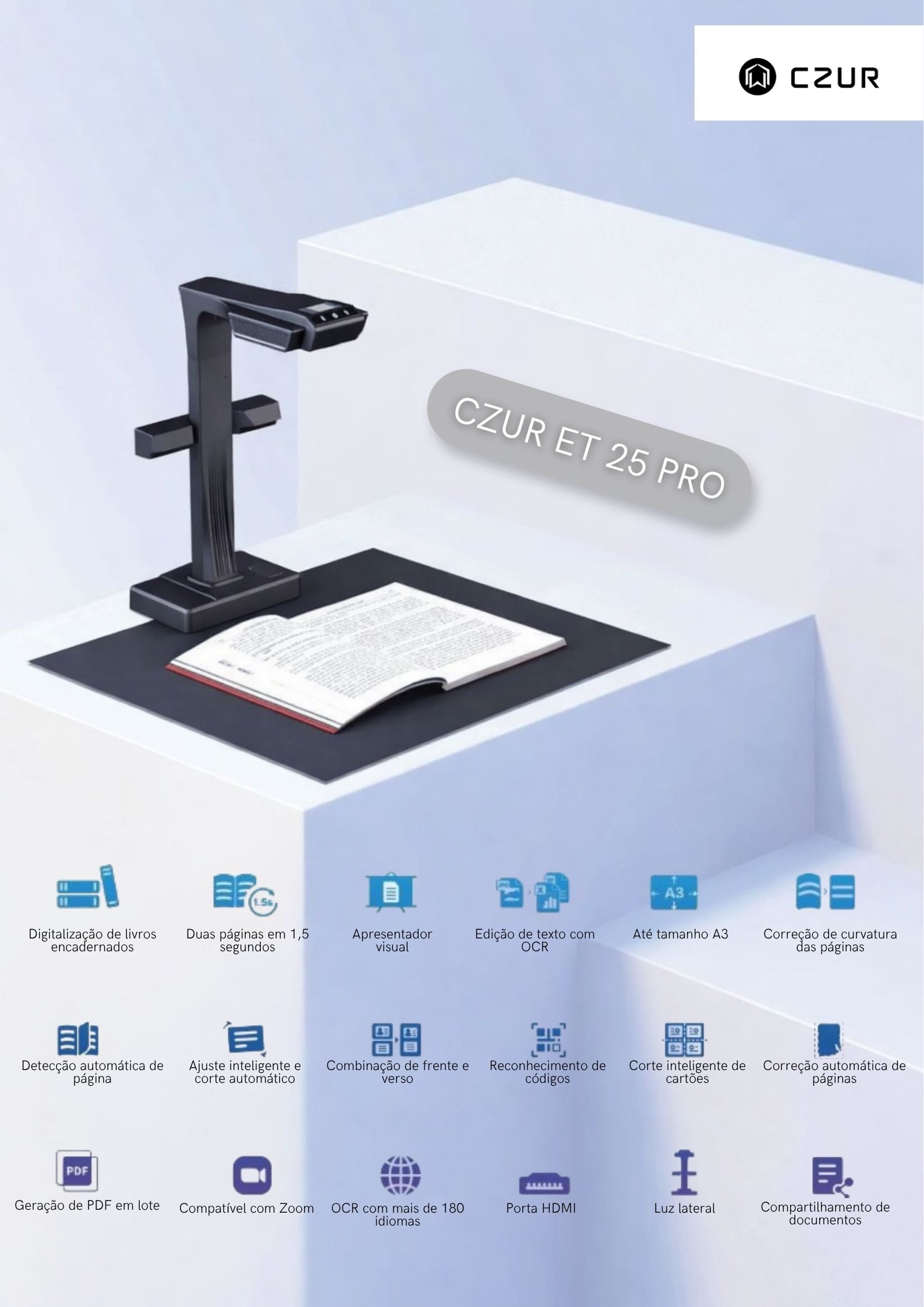 O ET 25 Pro é um scanner inteligente projetado para oferecer ainda mais desempenho e qualidade na digitalização de documentos. Com tecnologia avançada e câmera de alta resolução, ele garante capturas rápidas, nítidas e com excelente nível de detalhamento.